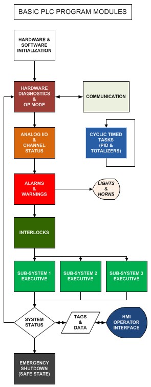 The majority of PLC programmers focus on a very entangled, spaguetti looking executive logic code and sometimes they even leave out critical functionallity such as User-Friendly Detailed Hardware Diagnostics And Emergency Shutdown Routines that leave the system in a safe state should a major malfunction occur, we include these critical blocks in every project.